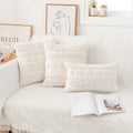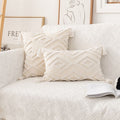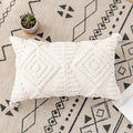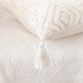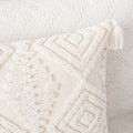 Cute tufted geometric pillowcase with tassels from the collection of aesthetic pillow covers. Embroidered geometric print on the top side and soft linen canvas fabric on the bottom with hidden zipper. Perfect for bohemian room aesthetics.