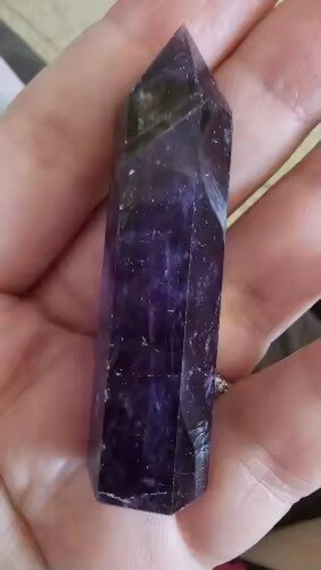 Put this hexagonal crystal pointing tower on your crystal shelf or desk to add a touch of pure magic to your room. Natural deep purple amethyst crystal hexagonal pointing tower will be a perfect addition for witchcore or fairycore inspired rooms.