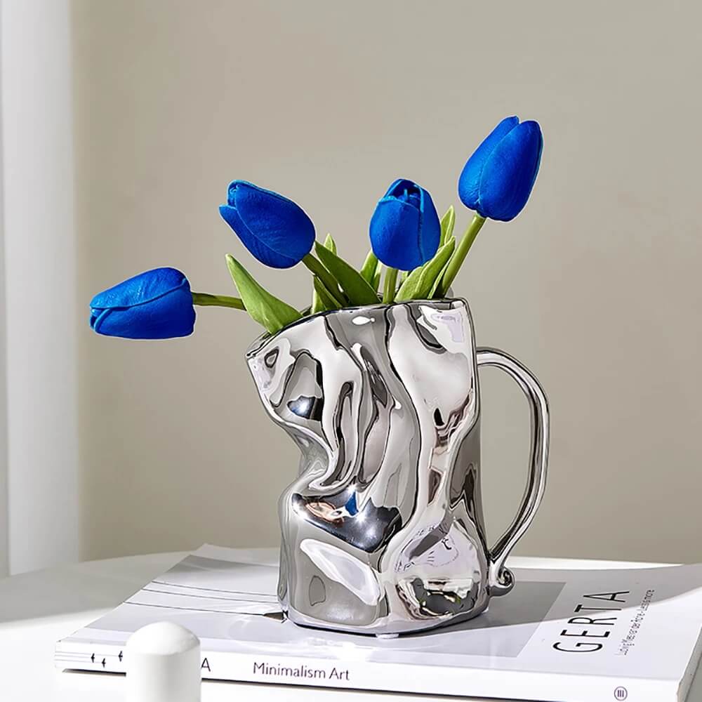 - Package includes: 1x Crumpled mug shaped ceramic vase