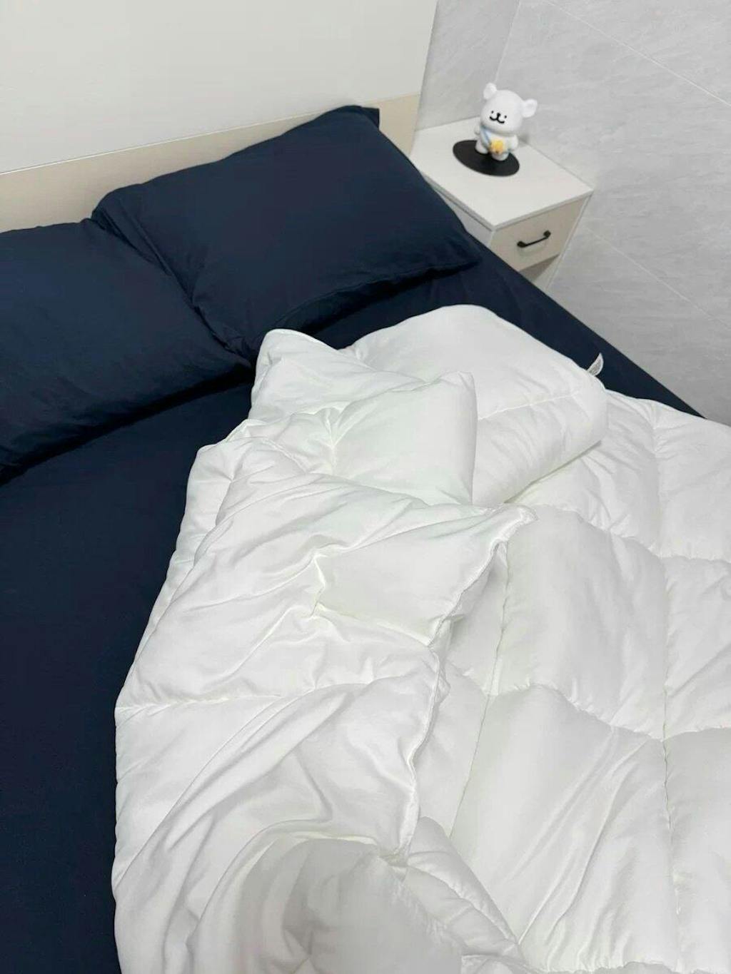 Dive into comfort with the Deep Blue Ocean Bedding Set, where serene navy tones meet sleek minimalism. This set includes a fitted/flat sheet, duvet cover, and pillowcases in a rich deep-sea blue that brings calm, moody sophistication to any bedroom. Crafted from soft, breathable cotton blend, the smooth matte texture and subtle natural crinkle add effortless depth. It serves as an ideal backdrop for early mornings, late-night reading sessions, and minimalist spaces that require a bold color.