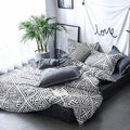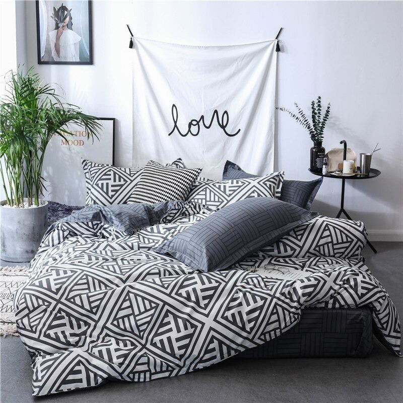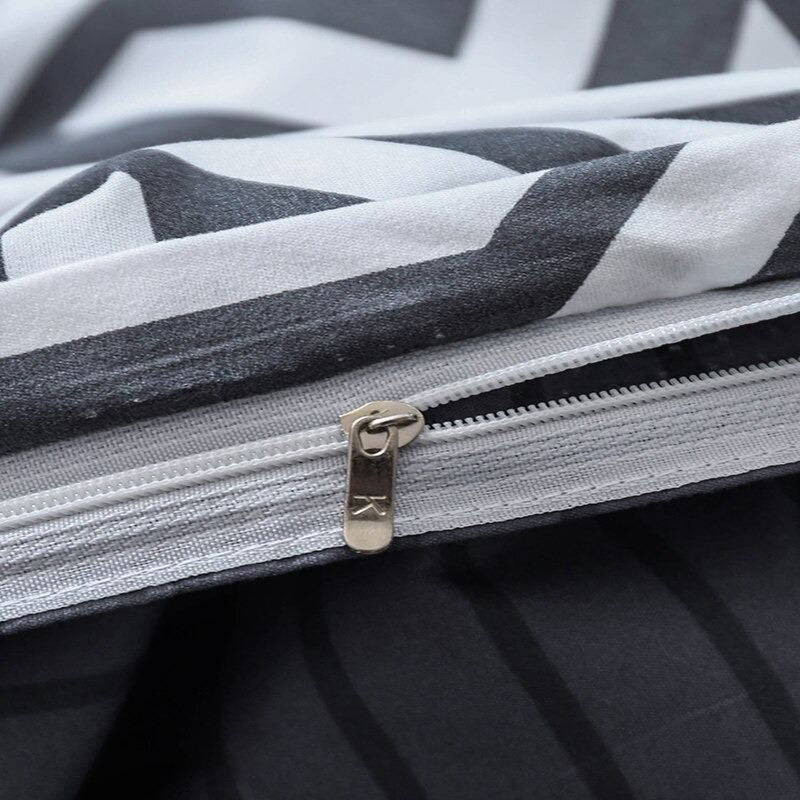 Duvet cover set of 3 with black and white geometric print. Perfect for decorating your boho/minimalist room.
