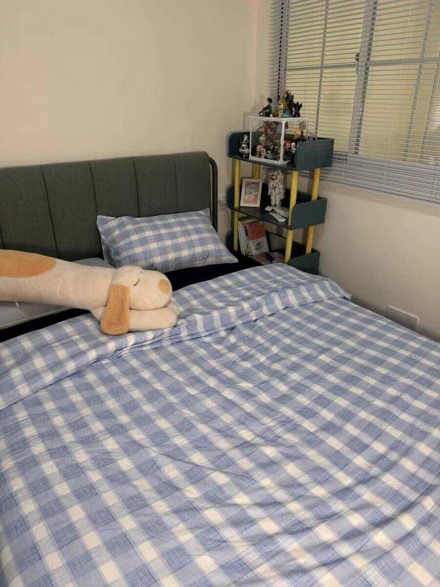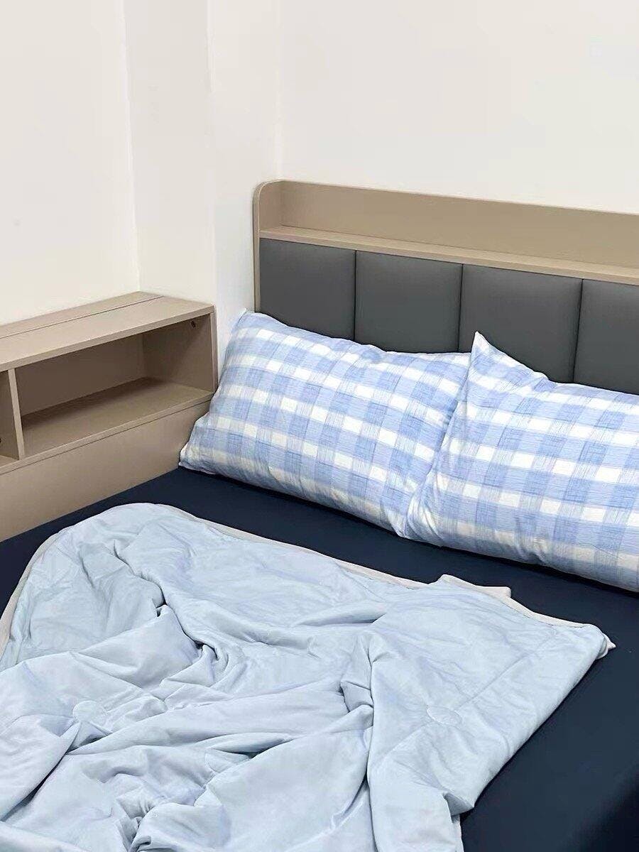 This duvet cover set features a classic blue and white gingham pattern with a lightly sketched, hand-drawn texture