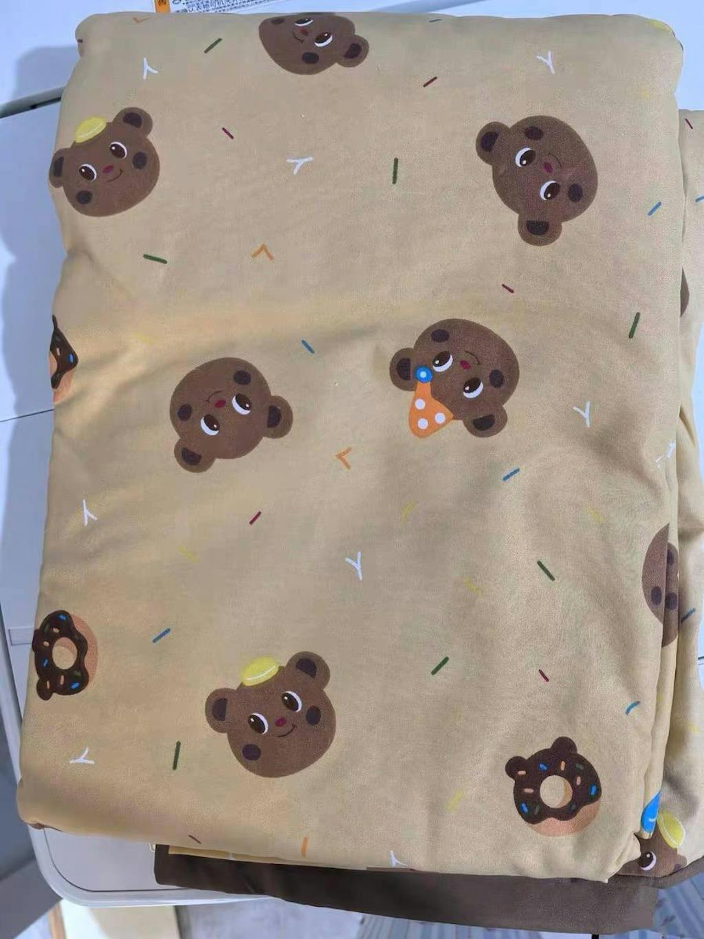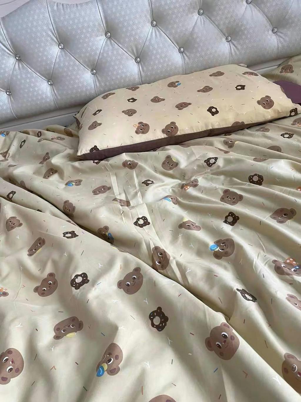 Beige and brown color bedding set with kawaii happy bears pattern print.