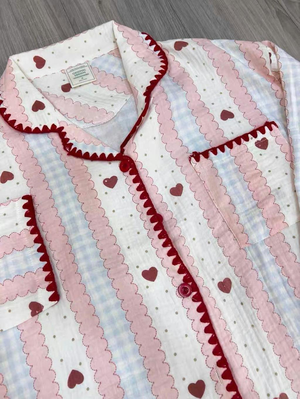 Stitched Edge Red Hearts Pajama Set