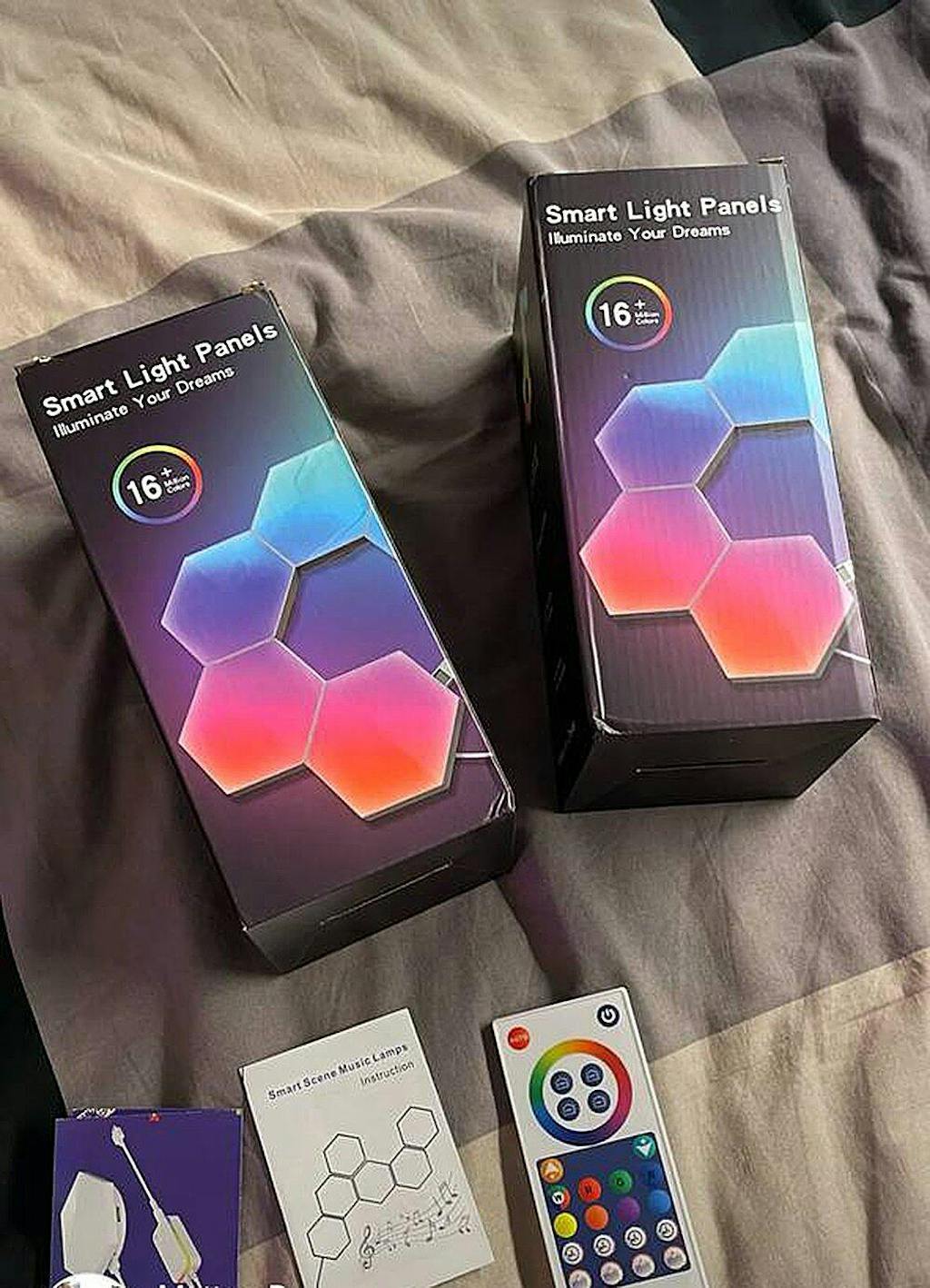Package includes: 3, 6 or 10x Hexagon LED Segments, 3, 6 or 10x Connection Joints, 1x Remote control, 1x Controller, 3, 6 or 10x Wall mount Stickers, 1x Instruction