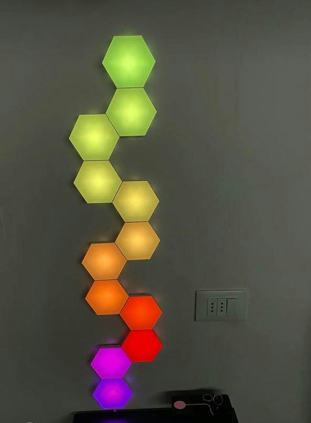 Hexagon wall mount LED lights will transform your game room beyond recognition in a few minutes. The board can be assembled into any shape with independent LED Hexagonal segments. Each hexagonal sector light board is equipped with an IC chip that allows to display up to 16 million colors on one single piece using a variety of preset dynamic modes, and it's all controlled with your phone! The soft matte surface of the led panel will create a smooth and precised lighting effect.