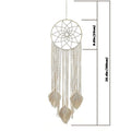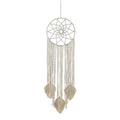 Add a special soft bohemian touch to your room with this natural macrame wall hanging dream catcher. Snowflake weaving in a circle + feather shaped hanging fringe.