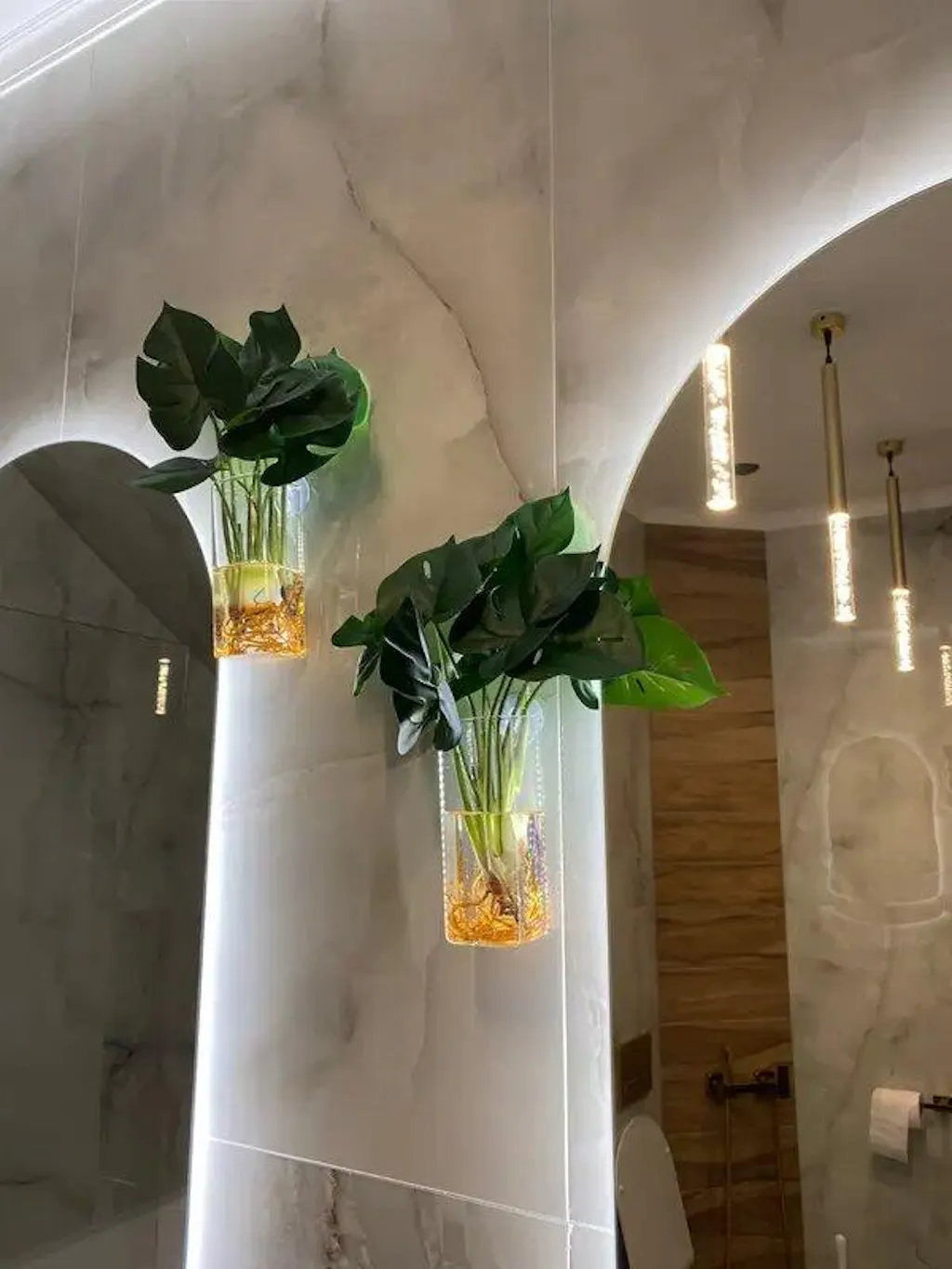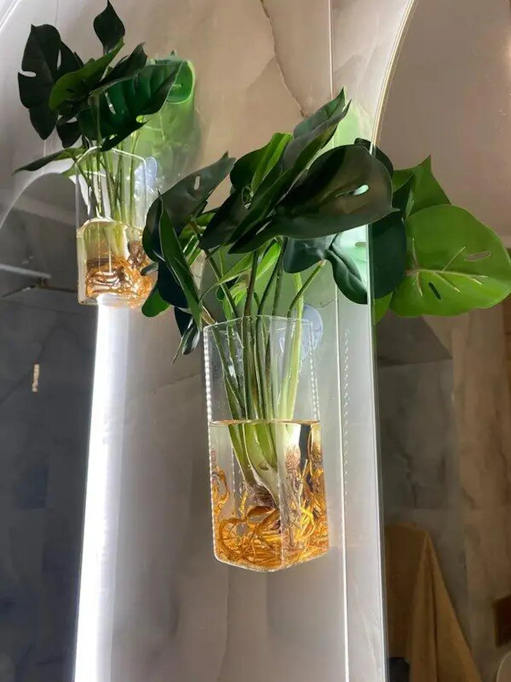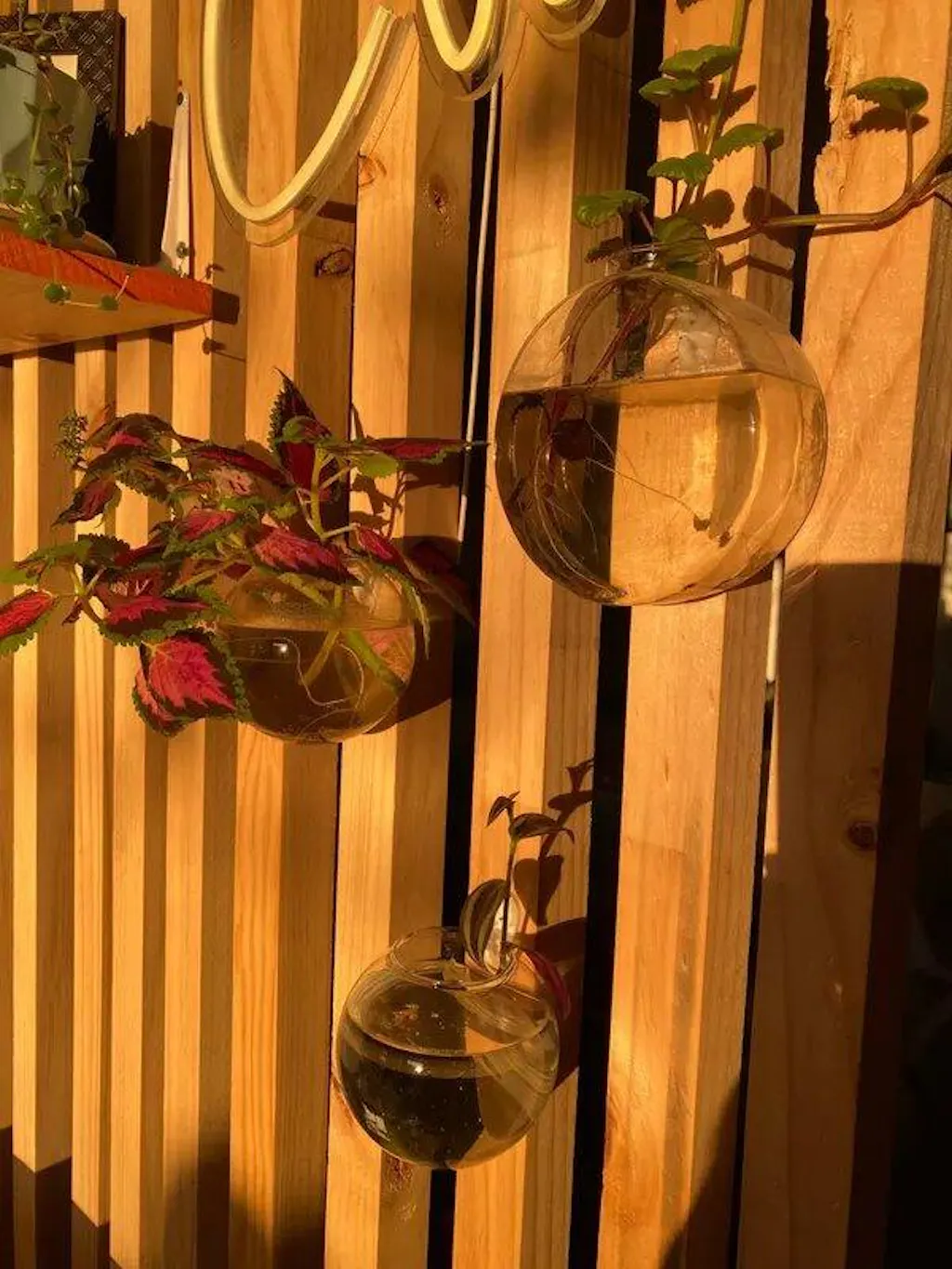 These transparent glass wall hanging ball planters sold in different shapes and are the perfect wall decor for nature-core lovers. Available in 8 different styles. This hanging ball vase can be used with artificial flowers, dries and decor or filled with water for fresh flowers. Hand-blown glass process gives it a smooth edge shapes.