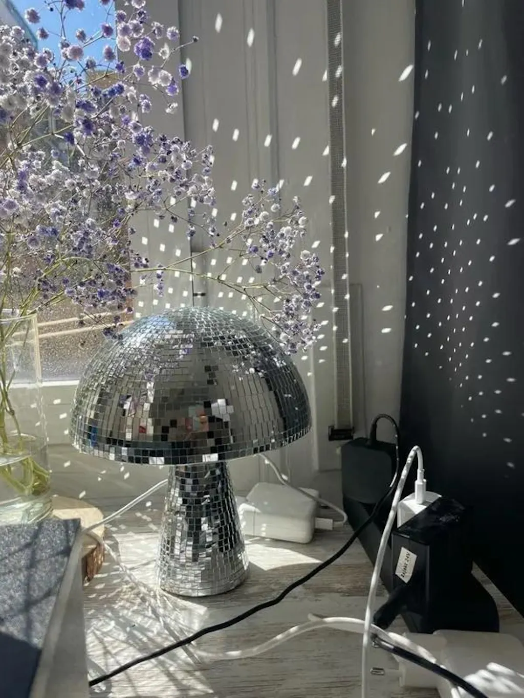 Let the party shroom, with this Mushroom Disco Ball! This unique disco ball is shaped like a mushroom, and throws sunbeams in a danish pastel shade. So put on your dancing shoes and get ready to boogie 'til the early morning light! Perfect for both danish pastel and indie aesthetic rooms.
