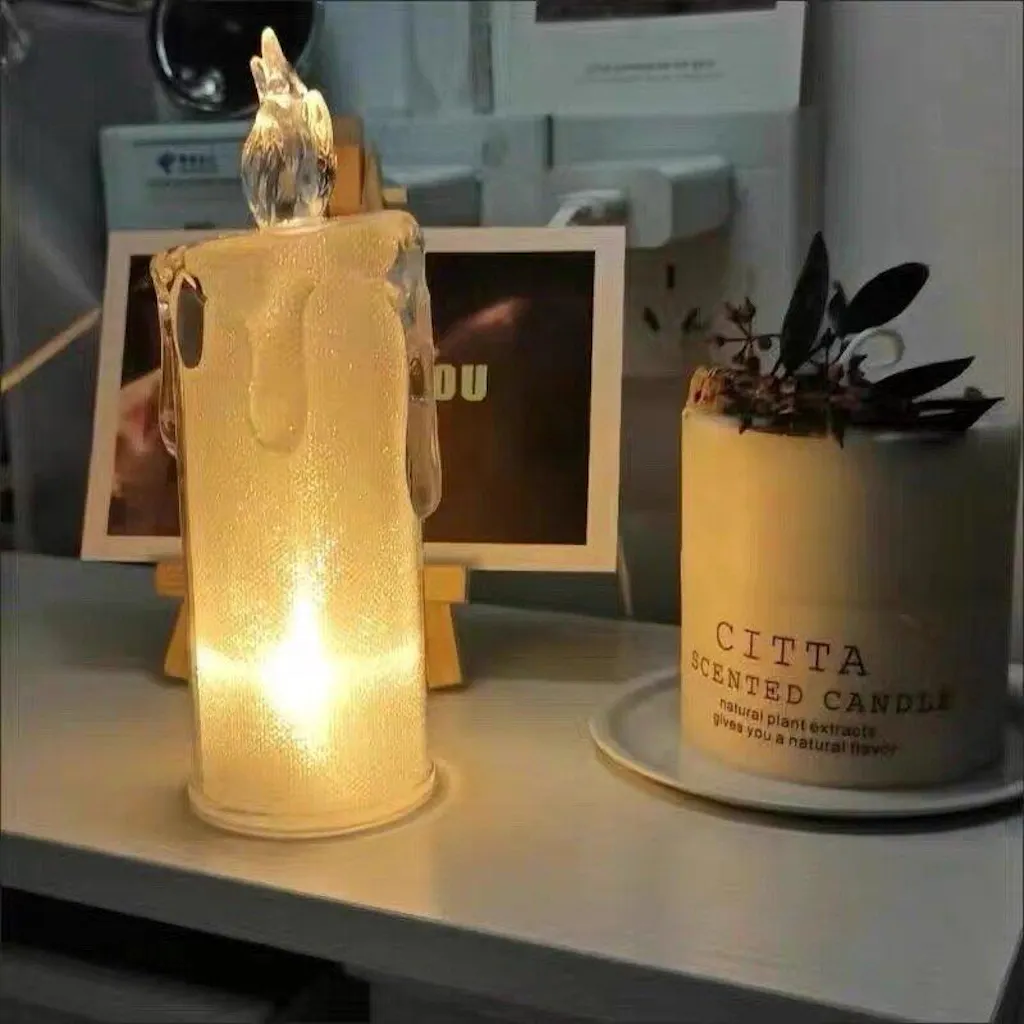 Set the mood with this shiny candle night light. Available in two sizes, its clear, slightly textured body and delicate flame-like top bring a touch of romance and warmth to your space. Perfect for dorms, bedrooms, or living areas, this lightweight piece is a dreamy accent on your bedside table, shelf, or desk, creating a cozy atmosphere wherever it glows.