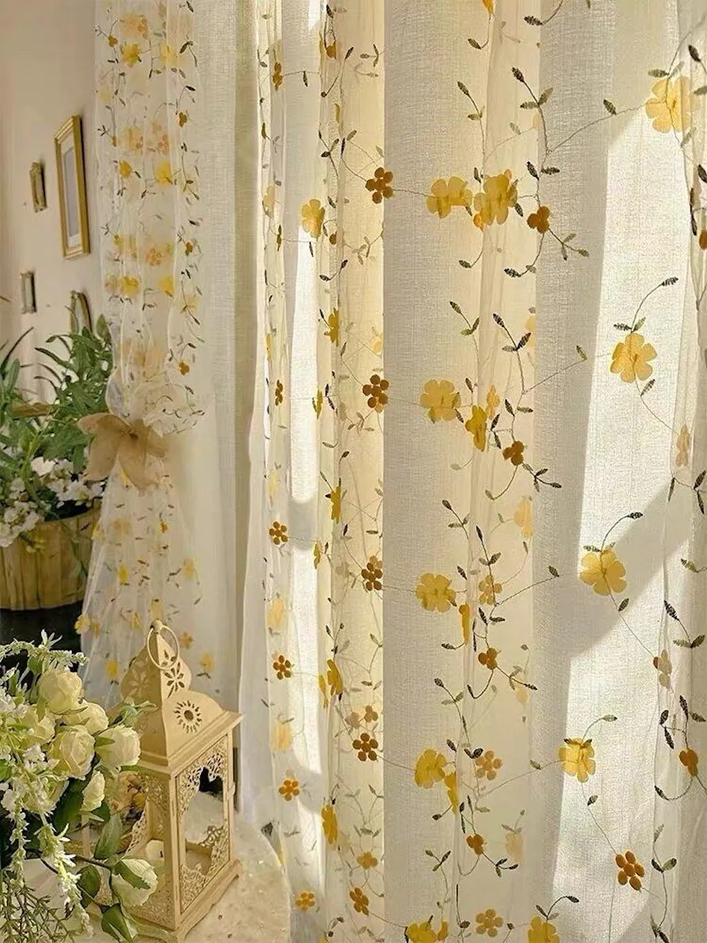 Yellow Wildflower Embroidered Sheer Curtain